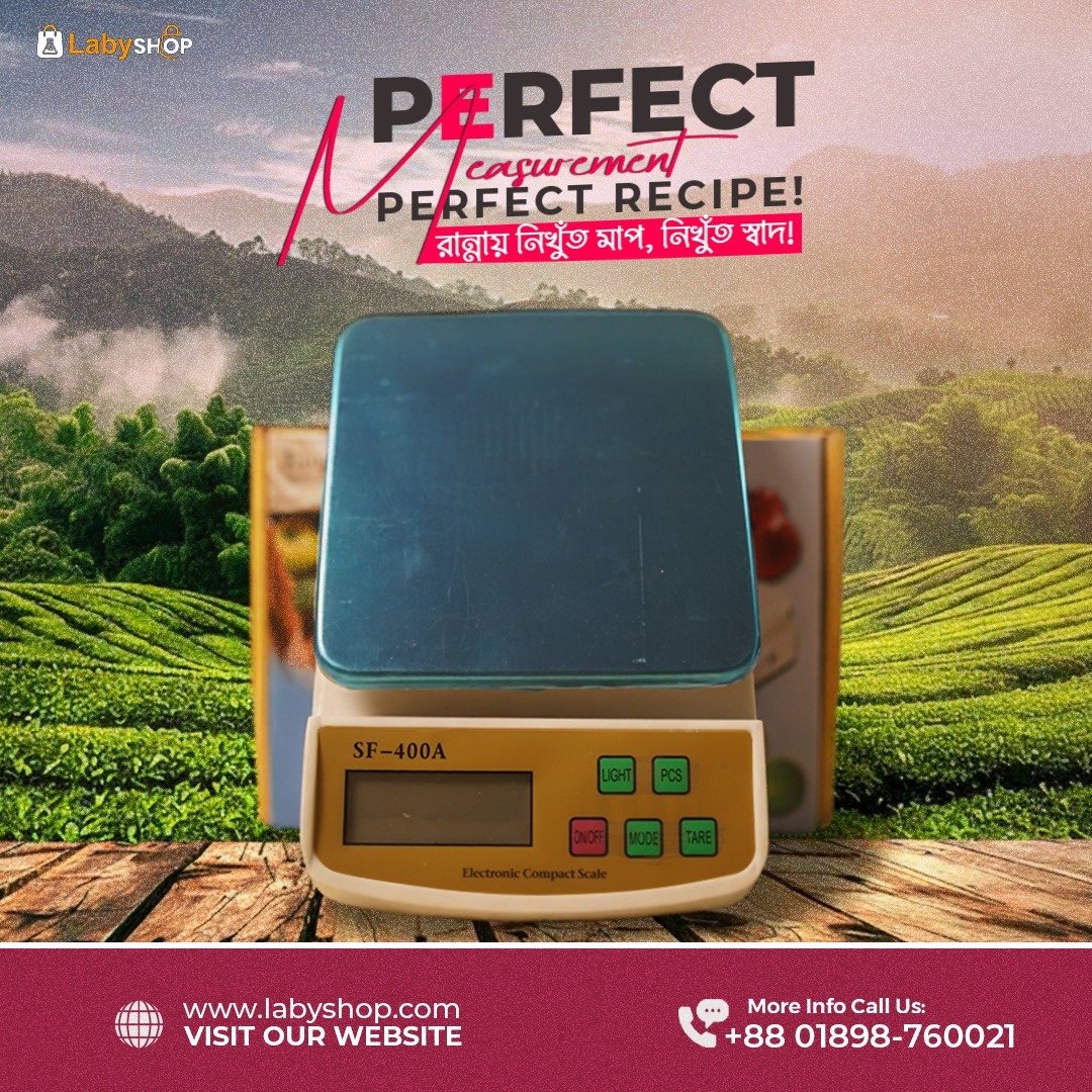 Electric Compact Kitchen Scale (Stainless Steel Plate) 1gm-10kg Capacity Model:SF-400A